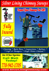 Have your chimneys checked yearly! Don’t risk your family with a defective or blocked fireplace! Call Matt at Silver Lining Chimney Sweeps – 770-942-1705