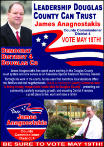 Vote For Leadership Douglas County Can Trust! Vote James Anagnostakis, County Commissioner, District 4. He Will Appreciate Your Vote May 19th!
